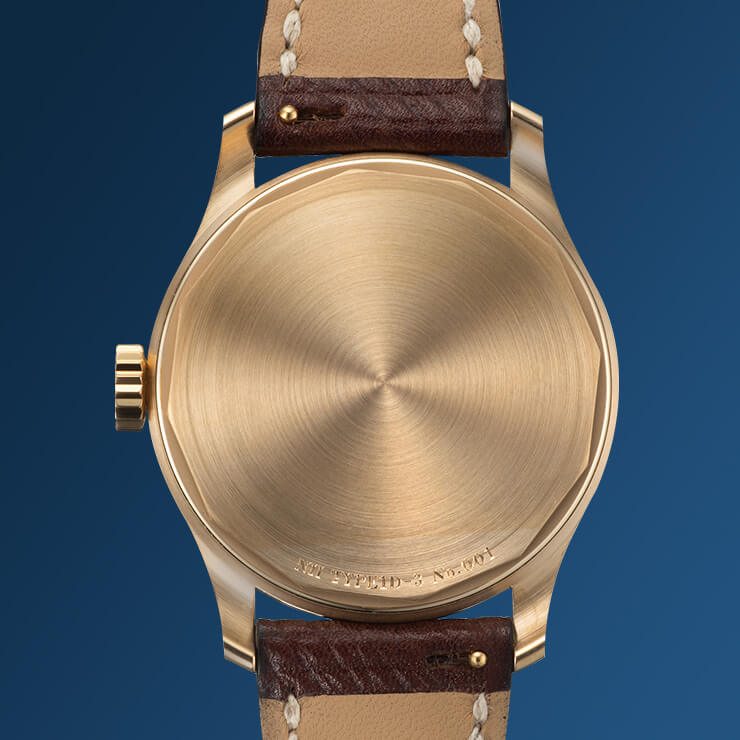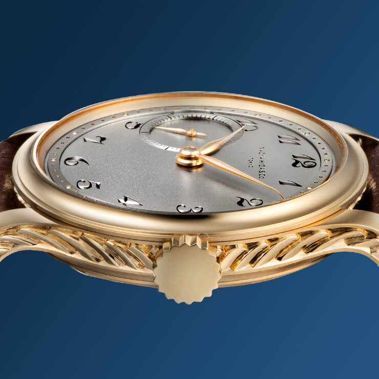- 文字盤外周の60個の18KYG製分目盛りは手作業で研磨され、分目盛りリングに組み込まれる