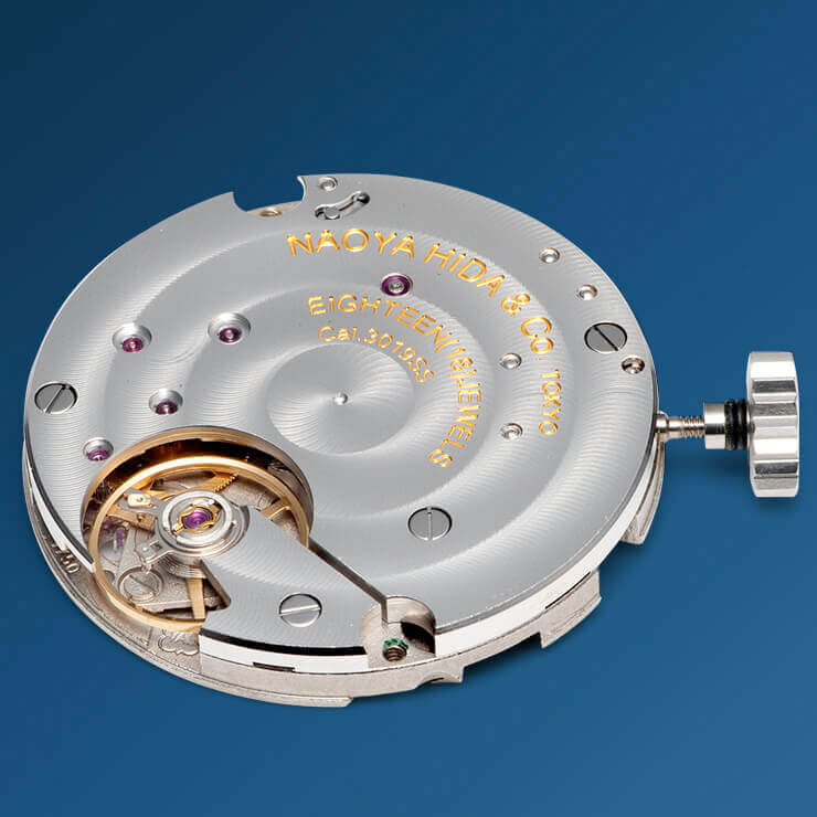 - 手巻きムーブメントCal.3019SS、9時位置にスモールセコンド、強く巻き応えのある巻き心地