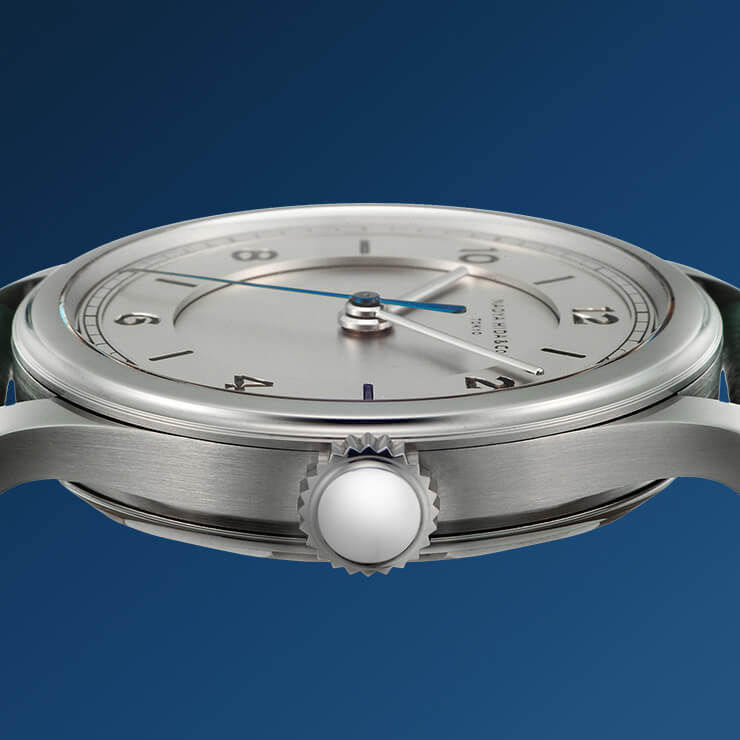 - Dial made of German Silver, hand-engraved Arabic indexes.