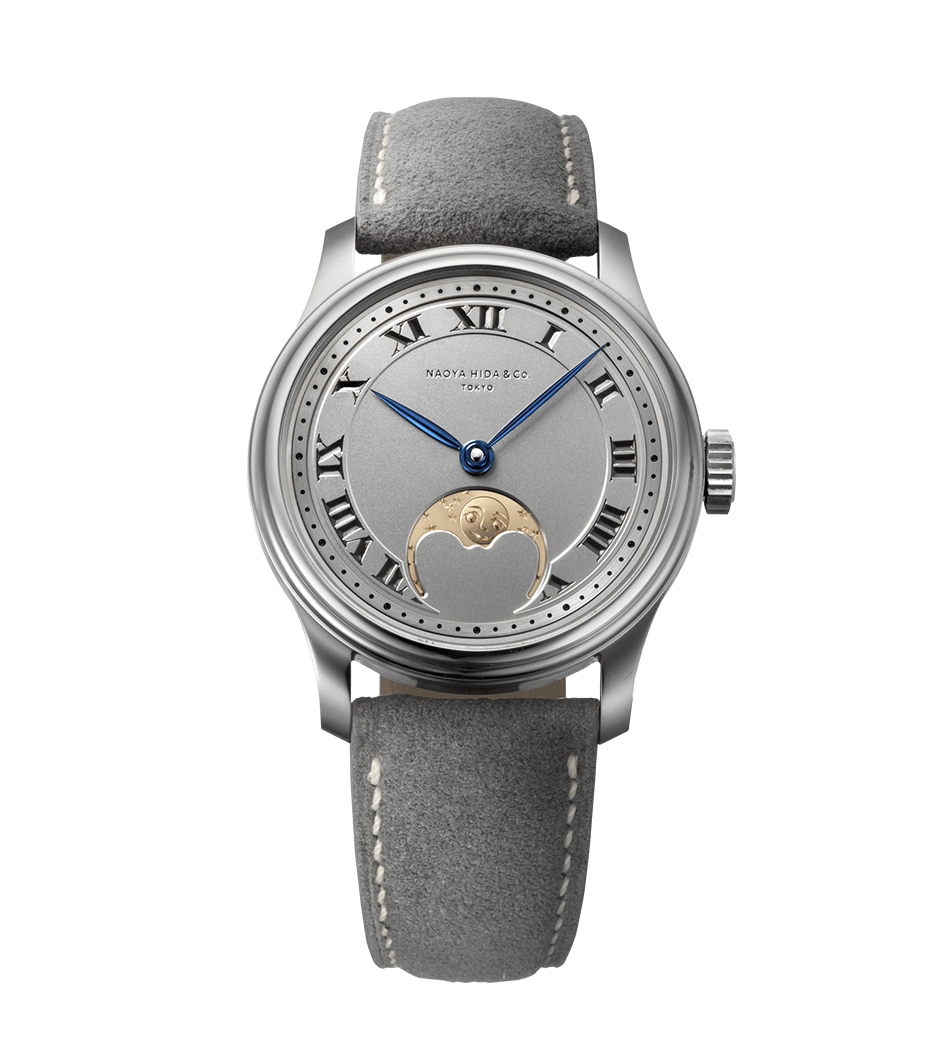 カシュー(いわゆる合成漆)によって墨入れを行ったロゴ、インデックス、目盛り - ムーンフェイズ
