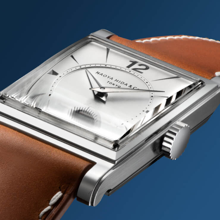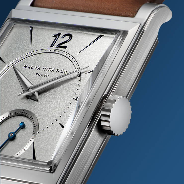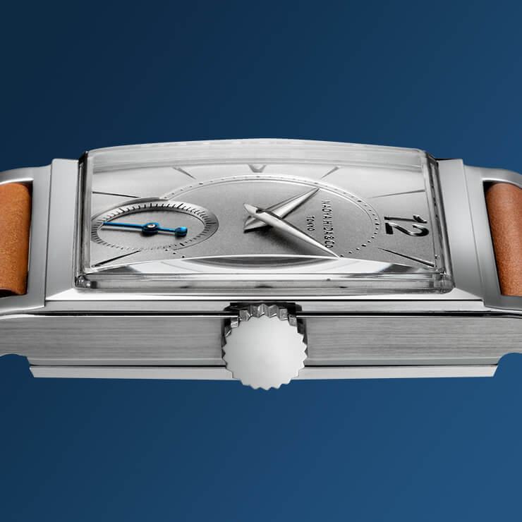 - Comparatively small two-piece case with a three-dimensional box-shaped sapphire crystal in two parts